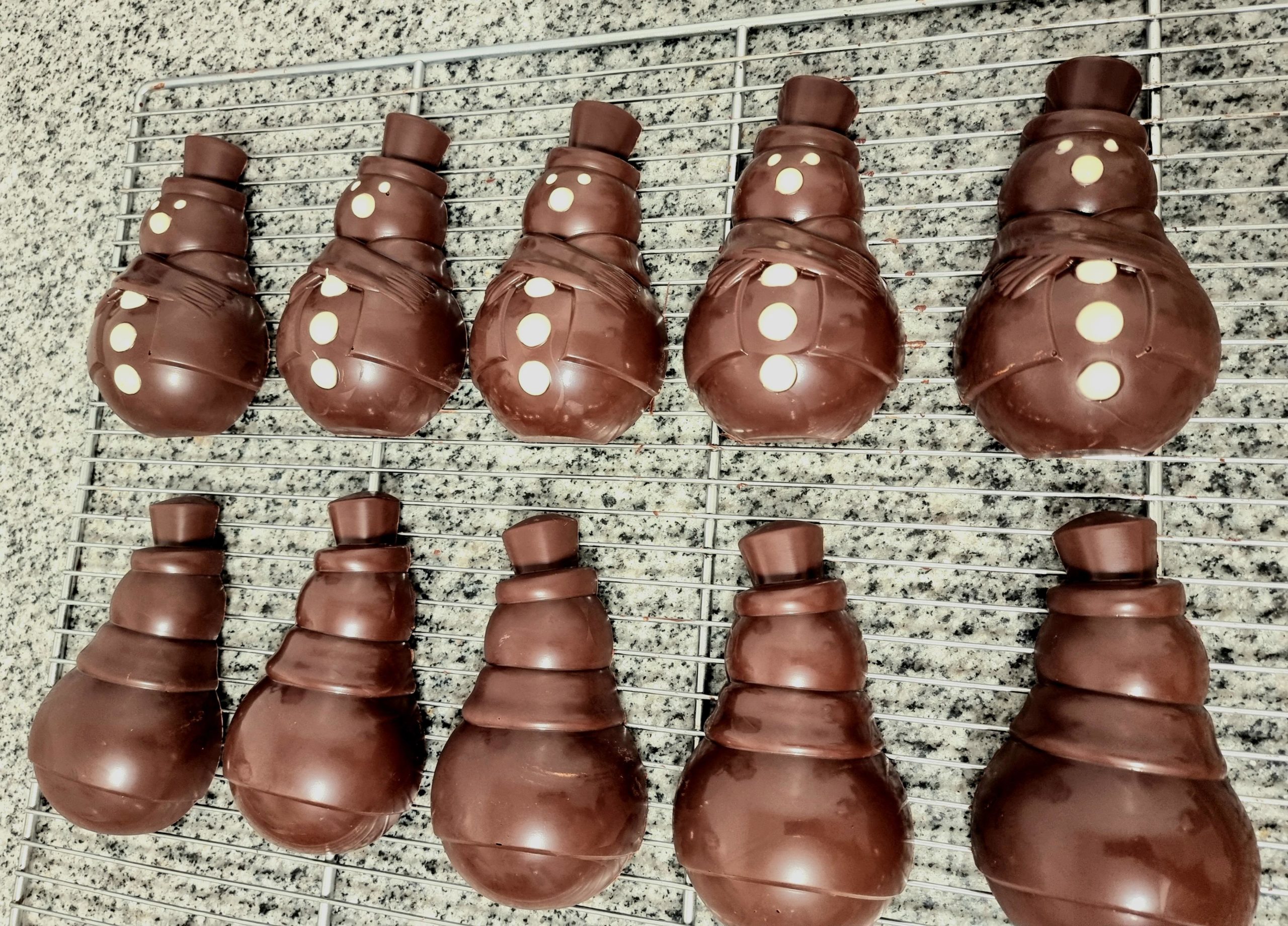 Bonhomme de neige en chocolat noir 73% ou lait 40% + friture.